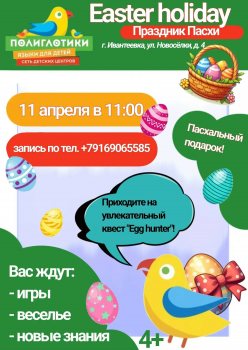 В «Полиглотиках» переполох! Пасхальный кролик спрятал все подарки, и нам нужна команда юных следопытов, чтобы их найти.